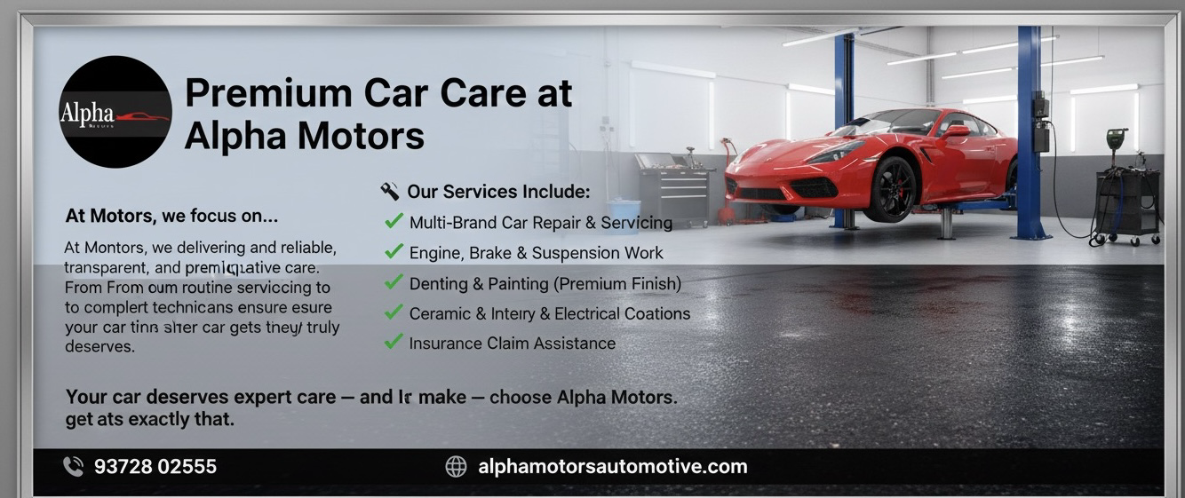 At Alpha Motors, we focus on delivering reliable, transparent, and premium-quality automotive care. From routine servicing to complex repairs, our expert technicians ensure your car gets the attention it truly deserves. 🔧 Our Services Include: ✔ Multi-Brand Car Repair & Servicing ✔ Engine, Brake & Suspension Work ✔ Denting & Painting (Premium Finish) ✔ Ceramic & Interior Coating ✔ AC, Battery & Electrical Solutions ✔ Insurance Claim Assistance Your car deserves expert care — and we make sure it gets exactly that. Drive with confidence — choose Alpha Motors. 📞 93728 02555 🌐 alphamotorsautomotive.com